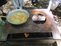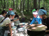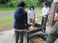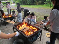 その後、野外炊飯でカレー作りをしました。グループに分かれ、一人一人が役割をもって調理していました。