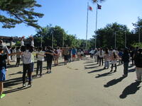 ”朝のつどい”では晴天のもとに体操をして,気持ちよく朝を迎えることができました。