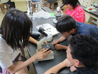 葉を顕微鏡で観察すると普段は見れないミクロの世界を見ることができました。