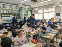 当日は、3年生は消防署と4年生は民間企業と連携した授業が展開された他、高学年は地域(青少協)主催の光中の部活動体験会に参加したりと、様々な教育活動が凝縮された日となり、視察団の方々は、様々な機関と連携した教育活動の推進にも興味をお持ちでした。