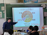 授業では、なぜおやつを食べるのかに始まり、おやつの位置づけや量、食べる時間帯について分かりやすく教えていただきました。