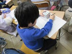 2年生算数「はこの形」、持ってきた箱の面を紙に書きとってみよう。
