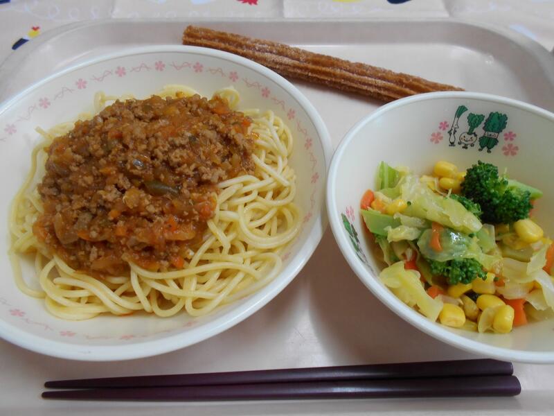 一覧へ スパゲティミートソース 日時 2026年02月24日(火) 公開対象 パブリック 詳細 今日の給食は、スパゲティミートソースです。豚ひき肉、たっぷりの玉ねぎやトマトで煮込んでいます。 甘みがあり、おいしいミートソースができました。子どもたちは、なんといってもチュロスに大興奮。 たくさんの笑顔が見られました。明日は、お魚献立です。 作成者 光小栄養 更新日時 2026-02-25 08:49:01