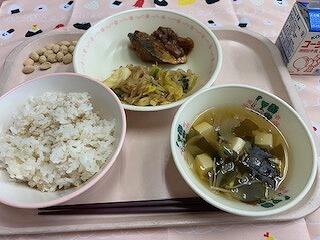 一覧へ さばのみそ煮 日時 2026年02月19日(木) 公開対象 パブリック 詳細 今日の献立は、ご飯、さばのみそ煮、小松菜の炒め煮、わかめ豆腐のすまし汁、きなこ豆です。 鯖のみそ煮は、大きな鉄釜で生姜や長葱を一緒に加えてじっくり煮込みます。身に味が染みて おいしくできました。 作成者 光小栄養 更新日時 2026-02-19 13:48:08