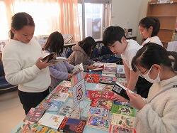 本の分類ごとに机に新しい本を並べて、ちょっとずつ読んでみる「味見読書」は、みんなのお楽しみです。