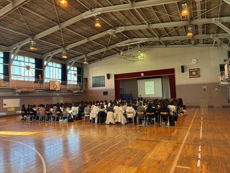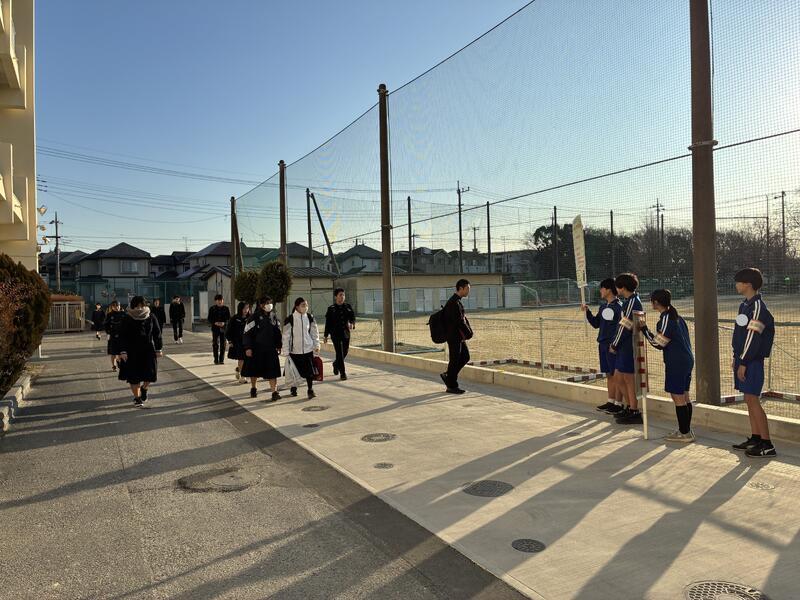 体育の授業で駅伝大会を実施。1・2年生が思いを込めて襷をつなぎ、仲間とともにゴールを目指しました。放送で結果が発表されると、喜びを全身で表現する生徒の姿が見られ、学校全体が温かい拍手に包まれました。