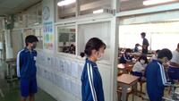 2年生の体育では、雨のため教室での授業の準備をしていました。
