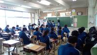 3年生は体育館で、1・2年生は教室でオンラインで参加しました。
