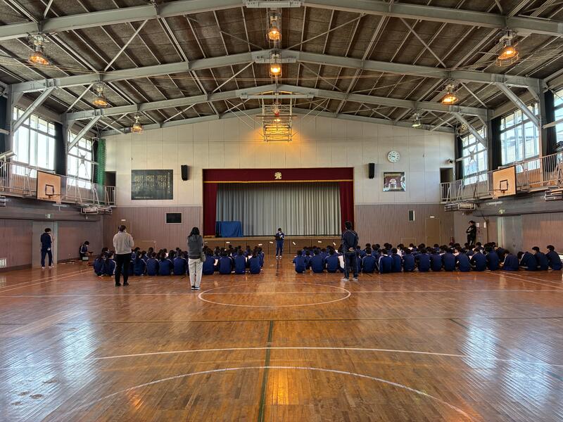 体育の授業で駅伝大会を実施。1・2年生が思いを込めて襷をつなぎ、仲間とともにゴールを目指しました。放送で結果が発表されると、喜びを全身で表現する生徒の姿が見られ、学校全体が温かい拍手に包まれました。