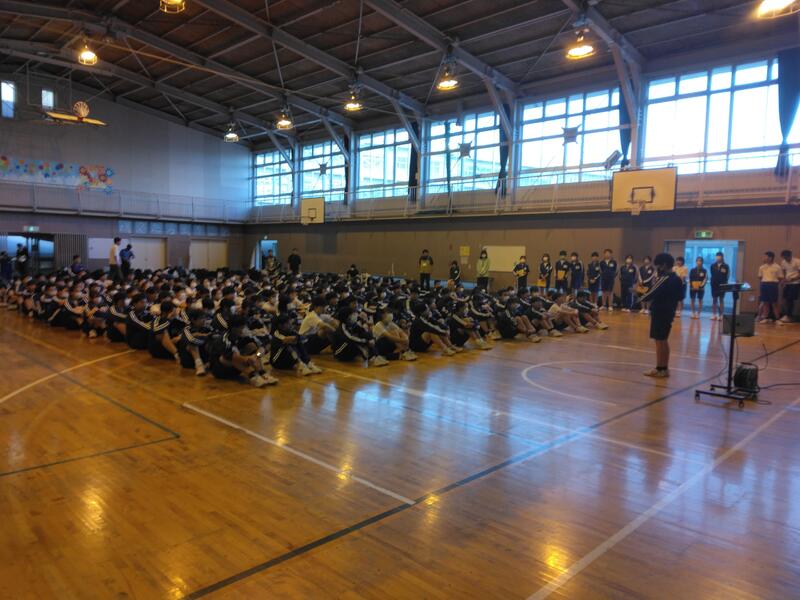 学校に到着して、到着式を行いました。