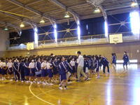 2年生では、林間学校のキャンプファイヤーでおどるフォークダンスの練習です。