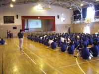 1年生は5月12日に向けた校外学習の集会を実施していました。