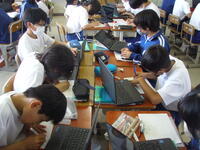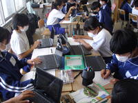 こちらは理科の授業になります。生徒それぞれで調べ学習を行い、説明しあう準備をしています。