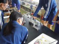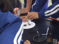 酸化銅の還元の実験を行い,食い入るように実験の様子を観察していました。