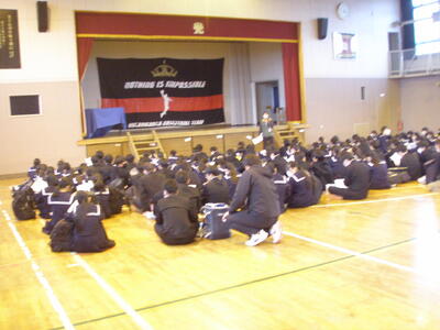 体育館で最後の確認をして,送り出しました。
