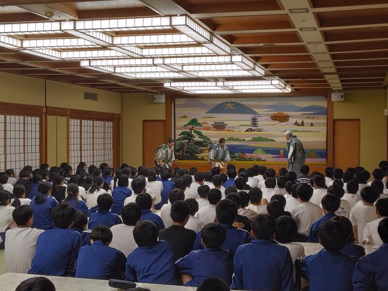 夕食後には、『狂言体験学習』を行いました。間近で狂言を鑑賞することができ、貴重な経験となりました。