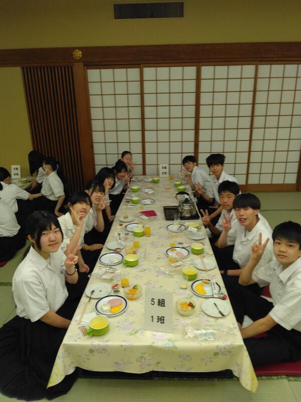朝ご飯をしっかりといただき、班別行動をスタートしました。協力して目標を達成させましょう。応援しています。『いってらっしゃい』