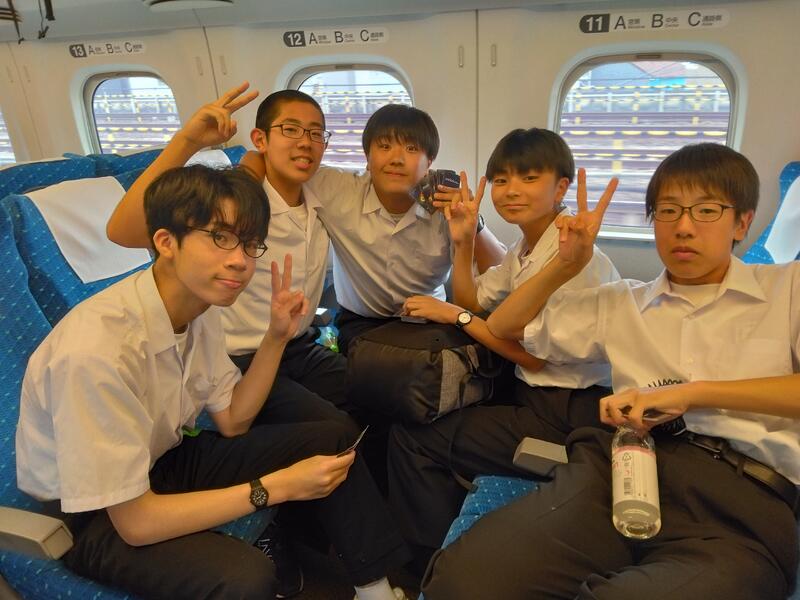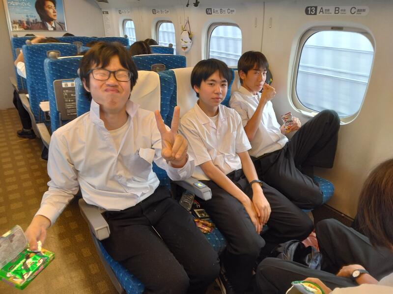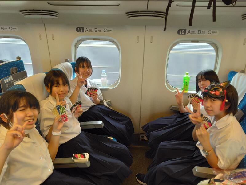 それぞれの学級で予定していた活動を終え、お昼ご飯を食べて、新幹線に乗車しました。車内では、みんなでおやつを食べたり、レクをしたりして楽しく過ごしています。