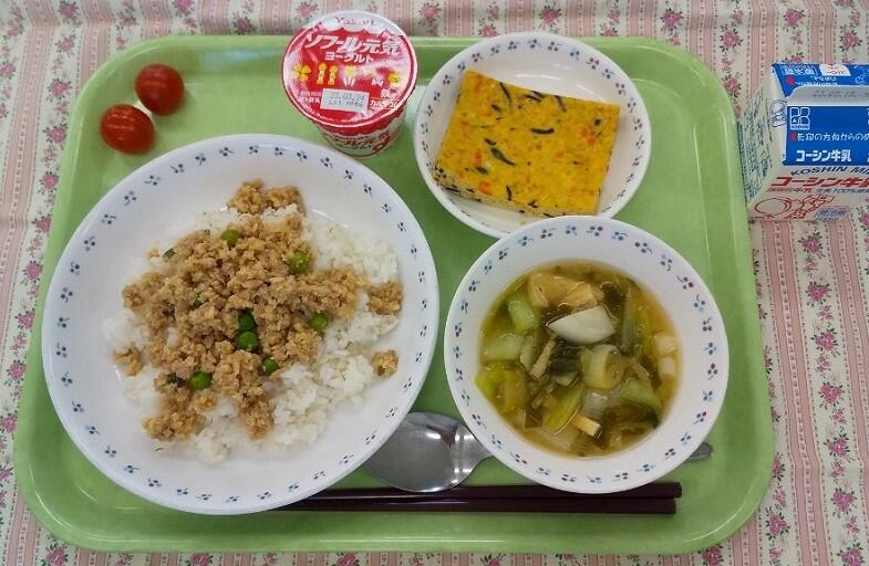 一覧へ 給食 日時 2023年03月07日(火) 公開対象 給食室・献立(写真付き) 詳細 鶏そぼろご飯 ひじき入り卵焼き 柏野菜の味噌汁 ミニトマト ヨーグルト 牛乳 作成者 光ヶ丘中学校管理者 更新日時 2023-03-17 13:47:56