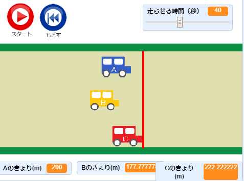 ◆指導案 【指導案】プログラミングで速さ比べをしよう.pdf ◆プログラミングの手引き書 速さプログラミング手引き.pdf ◆授業で使用するScratchファイル ※右クリック→「名前を付けてリンク先を保存」で保存してください 児童(ひな型):どれが速いかな 先生(完成例):どれが速いかな(完成例) 渋滞シミュレーション ◆授業で使えるワークシート 速さワークシート.docx |