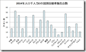 ところで、人口が違うんだからと疑問は広がった。確かに中国は圧倒的に販売台数が多いが、人口は日本の10倍くらいである。そこで人口も調べ、千人当たりの販売台数の表を作ってグラフ化してみた。見事に先進国と呼ばれる国々が浮かび上がり、ちょっと感動するグラフとなった。