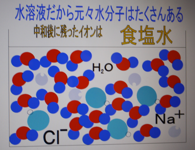 中学校理科の学習で分かりにくいものの一つが「イオン」である。そのイオンに+と-の二種類があり、その代表的なものがプラスの水素イオン、マイナスの水酸化物イオンである。そう言葉で聞いても確かに難解である。そこで原子・分子模型を変形して、イオンも表すといい。教科書にも載っているが、デジタル教科書ではないので動きはない。動いてくれたらずっとイメージしやすいのに、そこで作ったのがこの教材である。やがてデジタル教科書には類似のものが載るだろう。