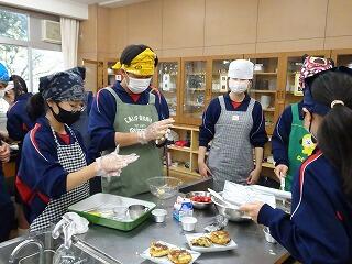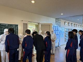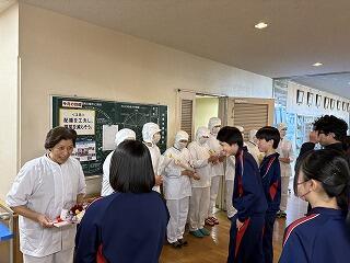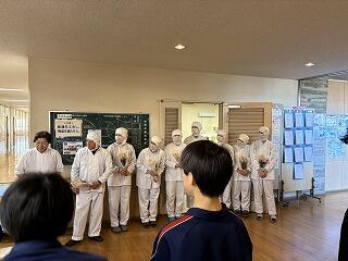 給食室入口前で、栄養士さん・調理員さんへの感謝の会を行いました。