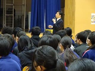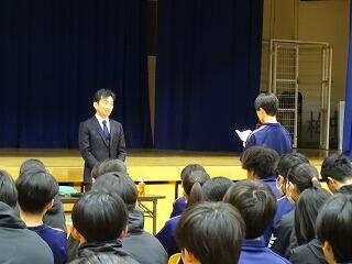 全体会では、来年度の教育課程についての説明や、生徒指導主任から春休みの過ごし方についての話がありました。
