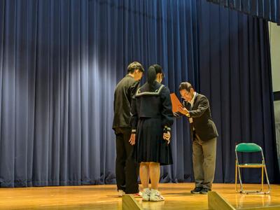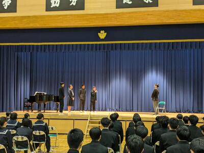 また、1・2年生は「南風」を合唱し、卒業生への感謝と応援の気持ちを心を込めて届けました。式の準備や片付けも担当し、先輩への感謝の気持ちを込めて一生懸命取り組み、温かい卒業式を支えてくれました。