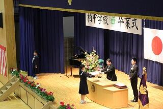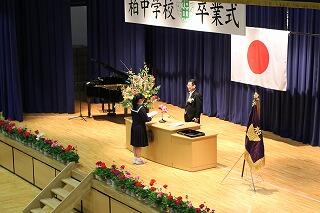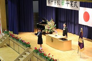 生徒が呼名し、先生が壇上で、「ハイッ!!」と返事。手作りの卒業証書が手渡されました。