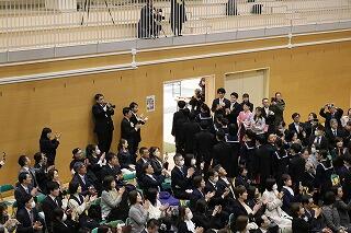 最初に1年生のときにお世話になった先生方からの動画メッセージが流れると、大きな歓声に包まれました。