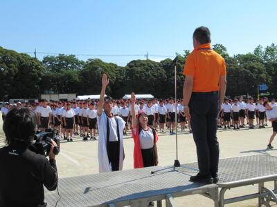 卒業生へ頑張れの気持ちを送るための集会でしたが、私たちがエールをもらう時間となりました。