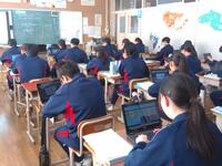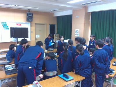3年生は、今年度は情報の技術でプログラミング学習を中心に取り組んでおり、現在は文字によるプログラミングを学習しています。HTMLやCSSなどのプログラミング言語を用いて、Webページの制作について学習しています。