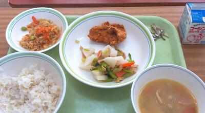 本日のメニューは、給食献立アンケートで3年生に人気のあった鶏のから揚げです。