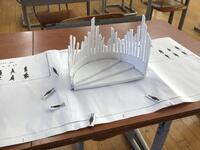 2年生は、新しい小学校の中庭をどのような空間にしたいかを考えました。場所の特徴を捉え、イメージしたことや「こんな場所になったらすてきだな」という思いを、さまざまな材料を使って形にしています。