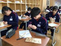 3年生は、「寄木細工の伝承」という題材で、国産木材や伝統工芸の良さを知り、その魅力を現代、そして未来に伝えられるような作品を制作しています。