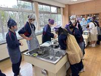 給食室入口前で、栄養士さん・調理員さんへの感謝の会を行いました。