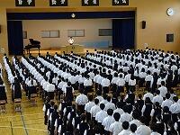 42日間の夏休みが終わり,2学期が始まりました。学校生活のリズムを取り戻し,充実した活動ができるよう,健康や安全に留意して学校生活を送りましょう。始業式では校歌斉唱,校長先生のお話,生徒代表の話,表彰,生徒指導主任の話がありました。