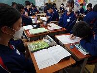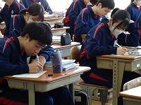 定時制の課程においては学力検査を3教科(国語・数学・英語)と定めた学校にあっては,学校設定検査を第1日の学力検査終了後に行うことができることになっています。検査場所は志願した高等学校です。20日は3教科(国語・数学・英語)国語と数学は各50分,英語は60分,配点は各教科100点です。21日は2教科(理科・社会)各教科50分,配点は各教科100点です。その他に各高等学校において面接や集団討論,自己表現等の学校設定検査を設けているところもあります。時間等についても各高等学校が別に定めています。(写真は最後の定期テストに臨む3年生です。)