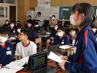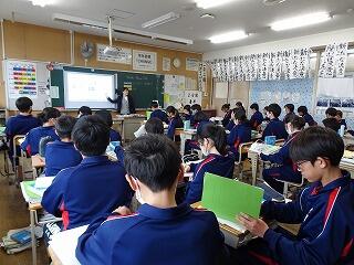 1年生理科の授業です。「自然からのめぐみ」と「ジオパーク」についての学習をしています。