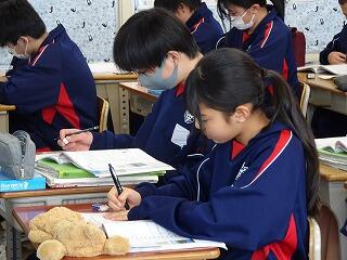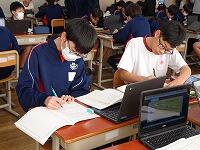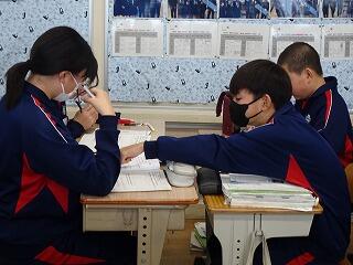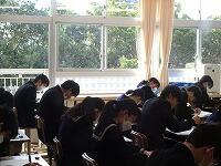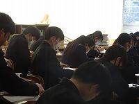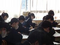 定時制の課程においては学力検査を3教科(国語・数学・英語)と定めた学校にあっては,学校設定検査を第1日の学力検査終了後に行うことができることになっています。検査場所は志願した高等学校です。20日は3教科(国語・数学・英語)国語と数学は各50分,英語は60分,配点は各教科100点です。21日は2教科(理科・社会)各教科50分,配点は各教科100点です。その他に各高等学校において面接や集団討論,自己表現等の学校設定検査を設けているところもあります。時間等についても各高等学校が別に定めています。(写真は最後の定期テストに臨む3年生です。)