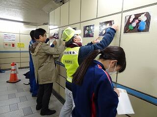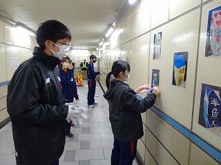12月21日(木)に西口地下道の清掃と作品の展示替えを行いました。6国プロジェクトとは平成27年度から柏駅西口周辺の小中高等学校,商店会,国道事務所,柏市などが協働して道路空間の活用により,柏駅西口周辺地区におけるまちづくりを推進し,柏駅周辺の賑わいを創出するため,年間1回の国道6号線西口地下道4か所の清掃と地下道の壁面へ児童生徒の作品展示を行っているものです。