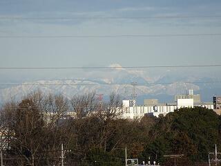 4階理科室前の廊下から雪をかぶった日光の男体山(2,484m)と日光白根山(2,578m)が見えます。