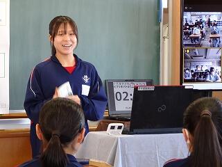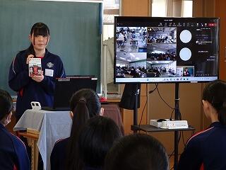 聞き手にスピーチの内容が,よく伝わるよう映像を使い,丁寧に説明をしていました。