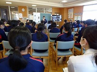 グループSECの木野麗子様,天野文子様を講師としてお招きし,2年生対象の性教育「すてきな人間関係について学ぼう デートDVってなんだろう?」を開催しました。お互いを尊重しあえる関係を築くために,①デートDVってなんだろう? ②DVは「力と支配」 ③デートDVをなくすために気づくこと学ぶこと ④DVをする人にもされない人にもならないために ⑤友達へのサポートなど,盛りだくさんの内容でした。御多用の中,親身に御指導いただき,誠にありがとうございました。