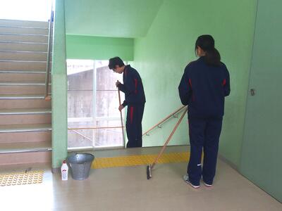 生徒達は、階段や踊り場の清掃もとても真面目に取り組んでいます!
