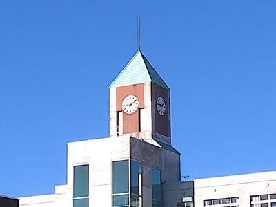 今朝は、この冬一番と言ってよい厳しい冷え込みでした。朝の寒さはとても厳しいものでしたが、真っ青に済んだ青空がとてもきれいでした。時計塔に住む「カッシー君」も、寒さにふるえていたかも知れません。