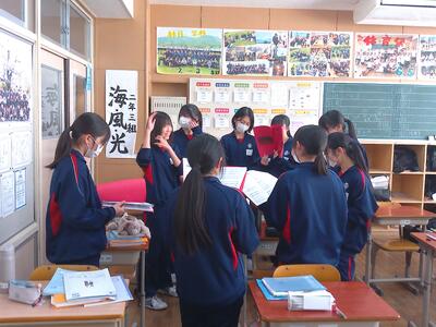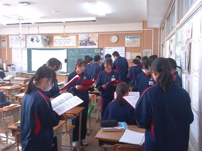 各学級では、約1ヶ月後に行われる3年生を送る会に向けて、歌声活動に取り組んでいます。歌声委員やパートリーダー、音取りが中心となり、パートごとの音が確実に取れるように日々練習しています。短い練習時間を上手く活用し、キレイなハーモニーが響かせられるように期待しています。
