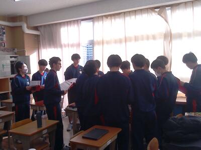 また、放課後に前期最後の常任委員会が行われました。これをもって3年生の委員長から2年生の新委員長へとバトンタッチされます。前期の委員のみなさん、これまでありがとうございました。