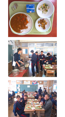 今日の給食について神戸先生に伺うと,大豆を「やこめごはん(山梨県の郷土料理)」といういつもと違った形で食べてもらえるようにしたことと,「せんべい汁(青森県や岩手県の郷土料理)」も取り入れ,ふるさとが色んなところにあるということを知ってほしい!という細かいところまでこだわりがあったことを教えていただきました✨